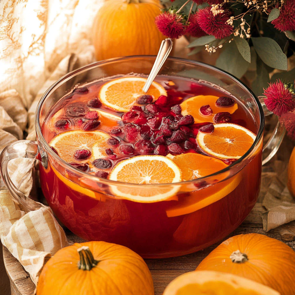 Autumn Punch is a delightful, non-alcoholic beverage that captures the essence of fall with its vibrant blend of juices and aromatic spices. Perfect for gatherings, holiday celebrations, or cozy evenings at home, this punch combines apple cider, cranberry juice, and a hint of citrus to create a refreshing drink that everyone will love. Enhanced with fizzy lemon-lime soda and garnished with fresh orange slices and cranberries, it not only tastes great but also adds a festive touch to your table. Whip up this easy recipe in just minutes to impress your family and friends with a drink that embodies all the cozy vibes of autumn.