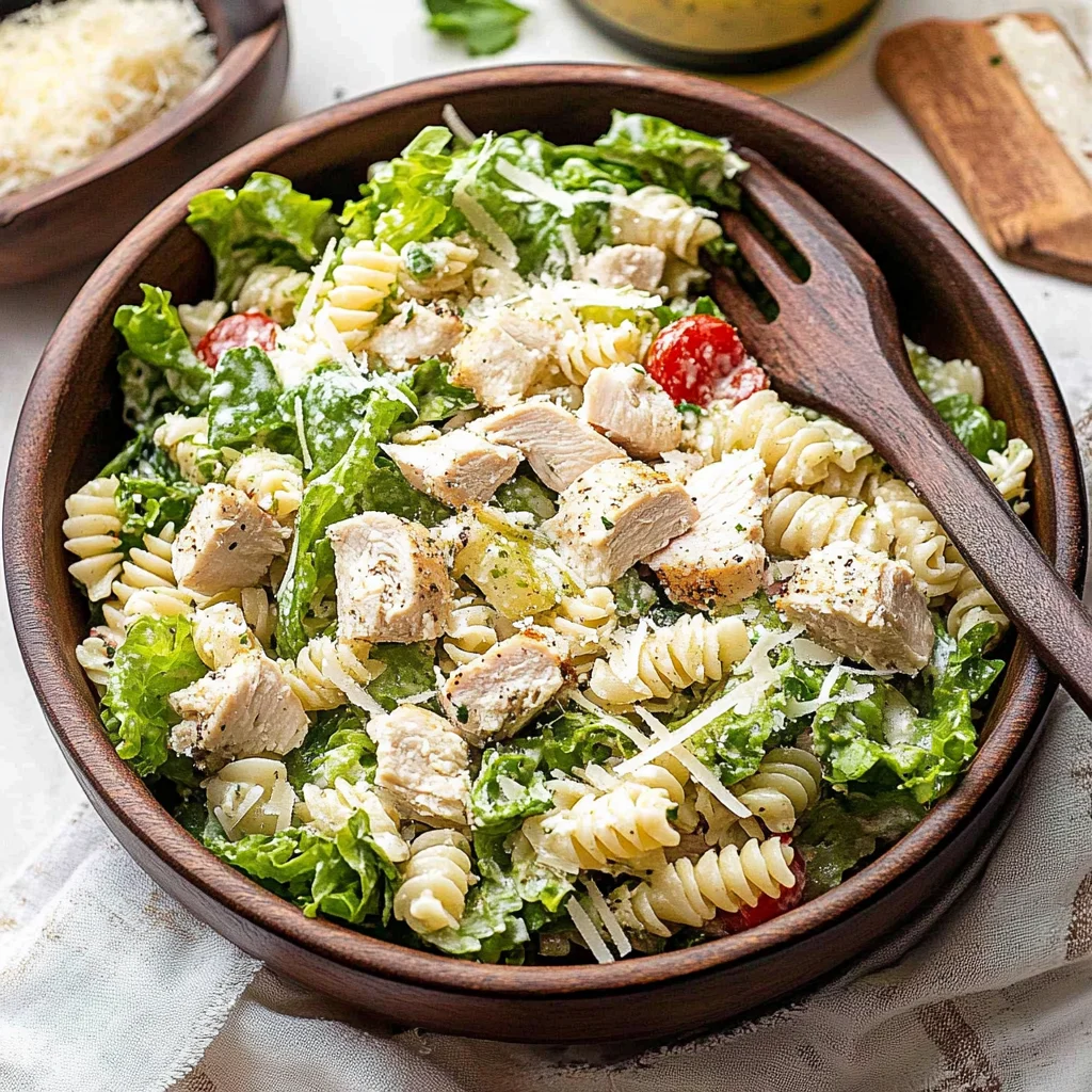 You can add ingredients like bacon bits, olives, or different cheeses to customize your Chicken Caesar Pasta Salad.
